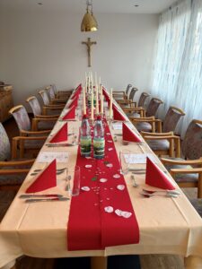 Bei einem Gläschen Wein und einem köstlichen Drei-Gang-Menü, das unsere hauseigene Küche für diesen Anlass extra gekocht hat, wurden Erinnerungen ausgetauscht und es entstanden schöne Gespräche.