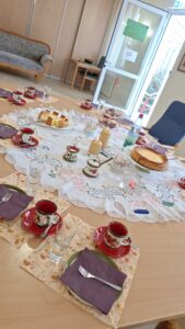 Besonders schön: Das nostalgische Kaffeegeschirr, das für diese besonderen Treffen verwendet wird, wurde von einer Bewohnerin des Hauses mit viel Freude gestiftet. Sie übergab das wertvolle Service als Geschenk, um die Erinnerungen an vergangene Zeiten in einer so persönlichen und gemütlichen Atmosphäre zu bewahren.