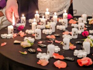 Für jeden Verstorbenen wurde auch eine Kerze entzündet, was den Moment des stillen Gedenkens verstärkte. Die Kerzen symbolisierten das fortwährende Licht, das die Verstorbenen hinterlassen, und erinnerten uns an ihre Bedeutung für die Gemeinschaft.